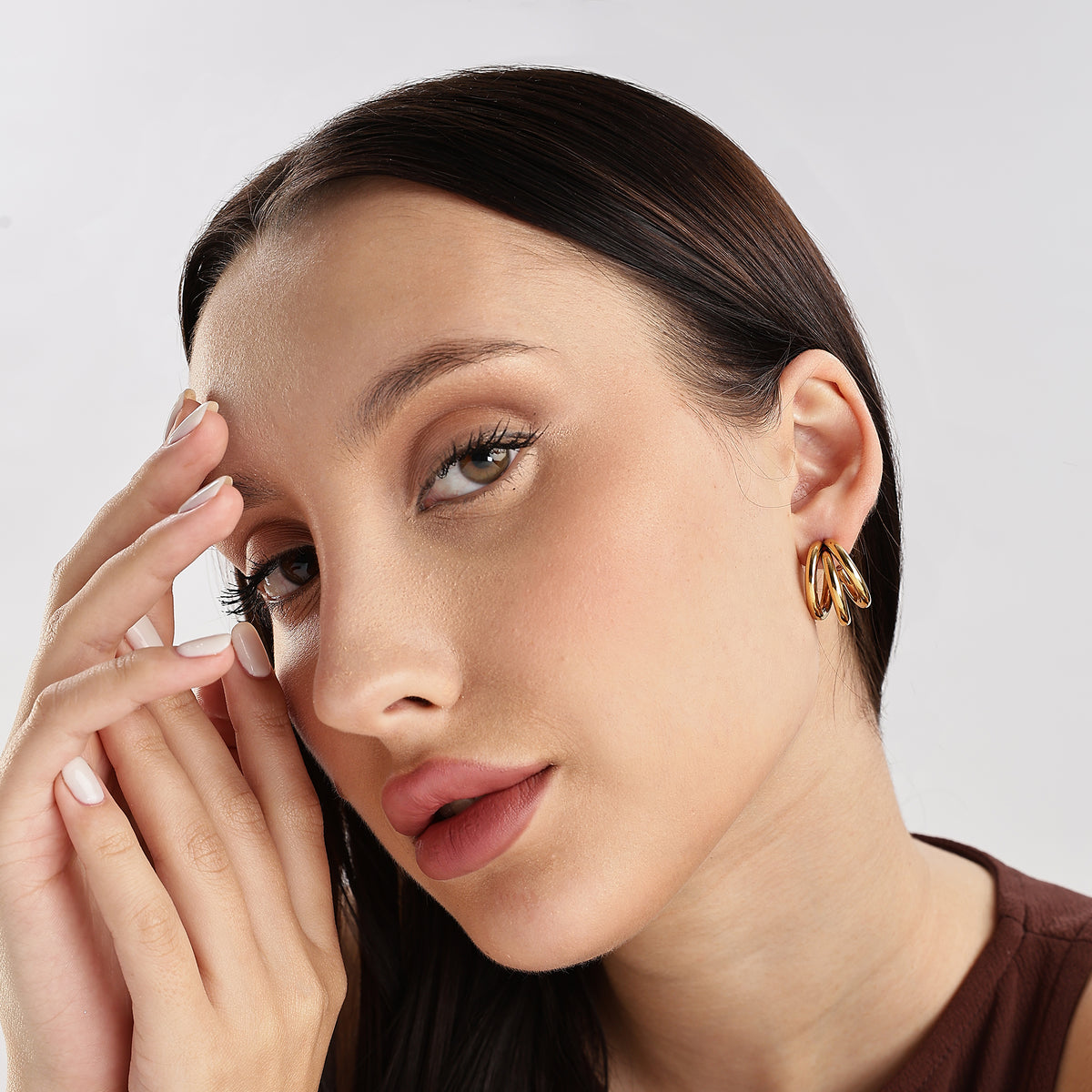 Step into effortless elegance with The Triteia Hoops—crafted to deliver a sleek, polished glow that instantly elevates any look. With their bold yet refined finish, these gold hoops serve as a striking statement whether worn solo or layered into a stacked ear look.