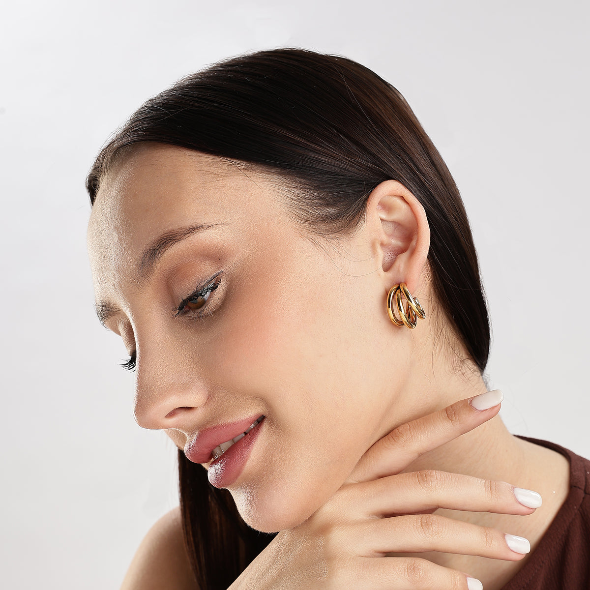 Made from premium stainless steel and coated in radiant 18K gold, Triteia is water-resistant, skin-safe, and surprisingly lightweight. From celebratory nights to power-packed days, these earrings bring confidence, shine, and sophistication to every occasion.