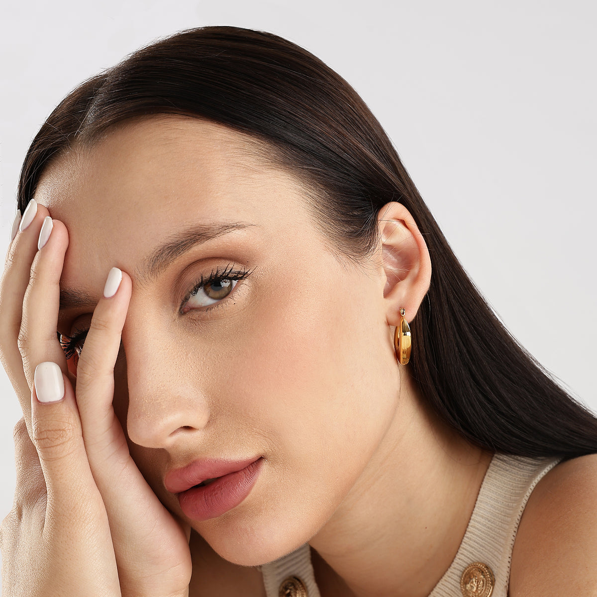 Crafted from stainless steel and coated in radiant 18K gold, Claire is lightweight, water-resistant, and gentle on sensitive skin. Whether it’s your first piercing or part of a stack, these hoops are built to shine—day in, day out.